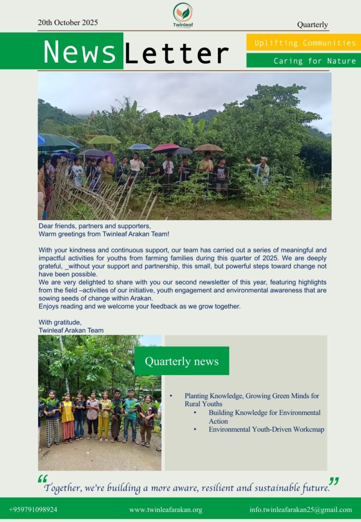 Here you can explore how youth-led change is growing stronger in rural Arakan. From sustainable farming innovations to environmental educaition, each issue captures stories, updates, and voices from the community we serve.